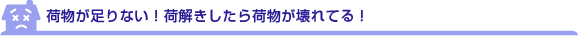 いざ、引越しが終わって、荷解きをしてみたら、荷物が足りない、段ボールの中の荷物が壊れているということがあります。もしもそれがわかったら、すぐに業者に連絡を入れること。壊れてしまったものは「どこで壊れたか」が問題になるので、発見したら触らず、その状態を写真などに撮っておくと良いでしょう。もしも、箱から出してしまったら、「荷解きをしてから壊れた」と言われるかもしれませんよ。 荷物が足りない場合もすぐに連絡を。ただし、中に何が入っていたか正確にわからないと、業者も補償のしようがない場合もあります。そんなことにならないように、段ボールには「中に何が入っているか」と「どの部屋の荷物か」、そして「番号」を書いておいて、数が足りているかどうかチェックするようにしましょう。 壊れ物などもきちんと段ボールにその内容を書いておけば、トラブルが減ります。また、荷物の紛失、破損に関しては、引越し後3ヶ月間しか業者に補償してもらえません。引越しが終わったらすぐにチェックを!